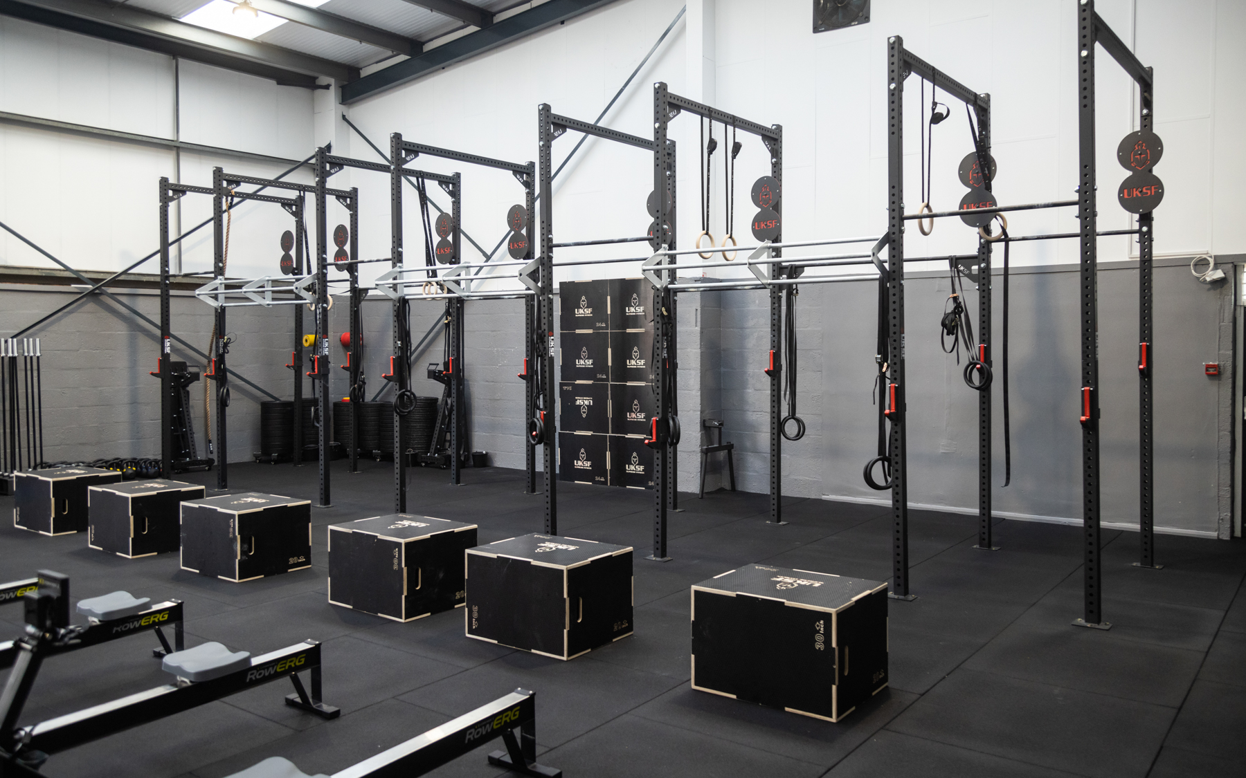 Many gyms choose fully customised rigs designed specifically for their space.