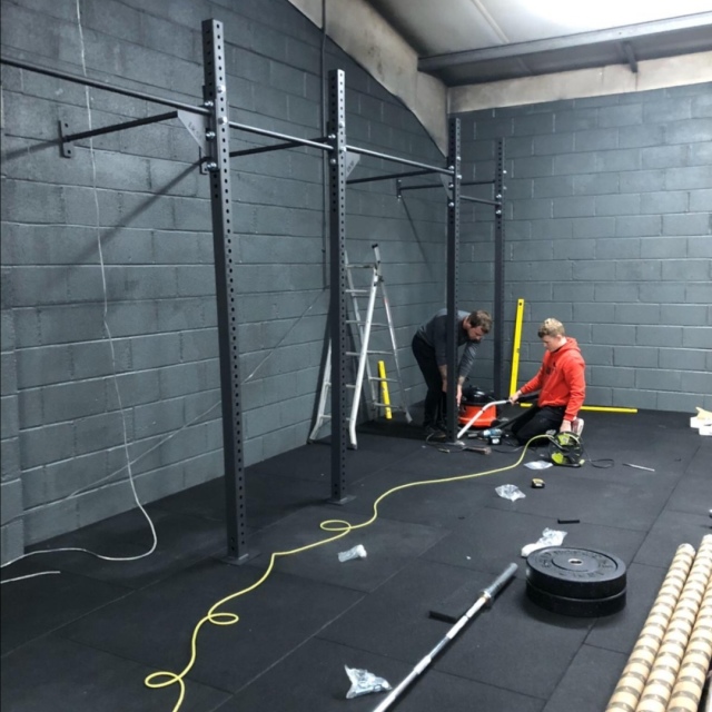 UKSF were responsible for supplying the full facility. The client needed an open area to conduct bootcamp, CrossFit and functional fitness style workouts. We supplied an artificial grass track for sled work, 20mm black gym tiles throughout a 24ft wall mounted rig and a range of strength and condition equipment as well as cardio machines.