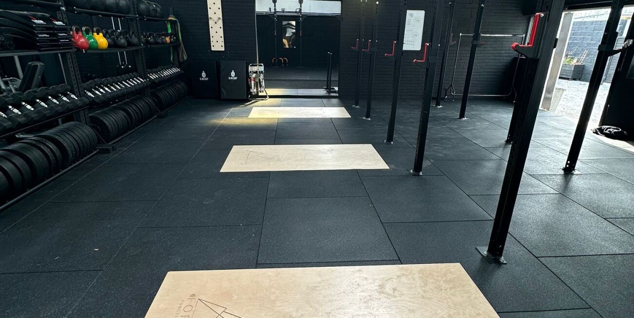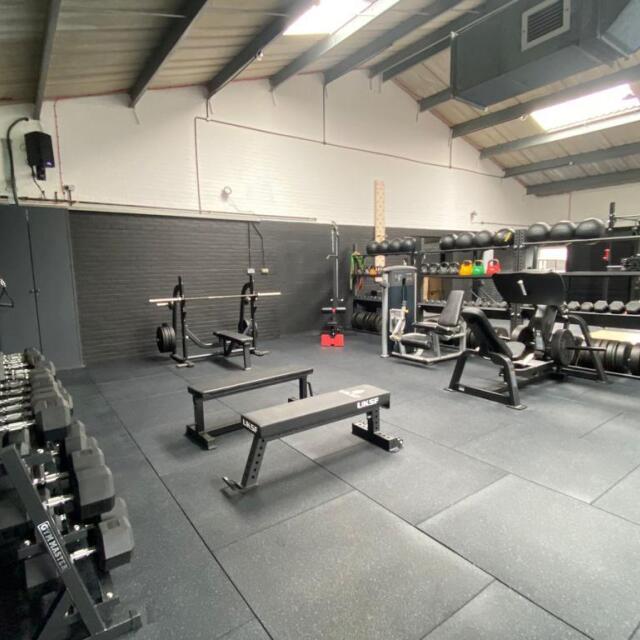 The quote consisted of our 20mm black speckled gym flooring tiles, functional CrossFit style fitness rig, dumbbells, Olympic barbells, kettlebells, and plate loaded machines.