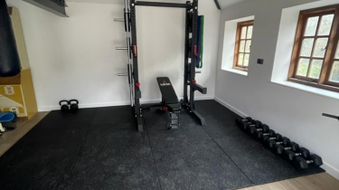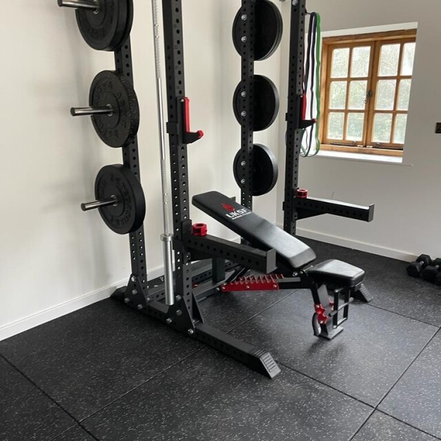 Upon their visit, it was decided that we would install a few products for this client. This includes 20mm grey fleck flooring, our M1 half rack, an adjustable bench, 20kg Olympic Cronos barbell, a full set of Olympic Pegasus bumper plates and some mobility bands.