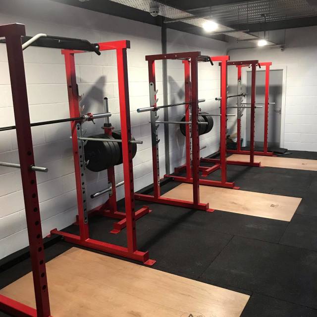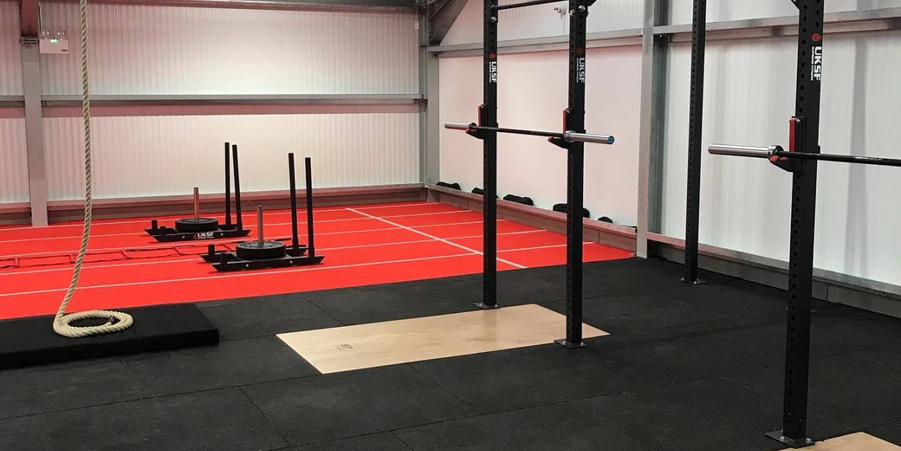 UKSF were responsible for supplying the bespoke gym flooring, astro turf, Olympic weightlifting platforms, functional fitness equipment and weights for the entire facility. S7’s colour scheme was black and red, so we had bespoke flooring made to match. The astro was red and the rig black. They had a dedicated area for functional fitness and CrossFit style workouts. We installed a 24ft free standing rig with high bars for ring work and muscle ups. They also required custom branded Olympic platforms in their functional zone and strength areas.
